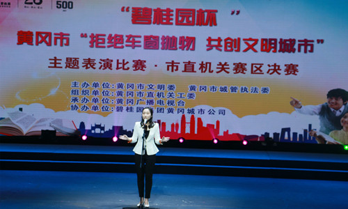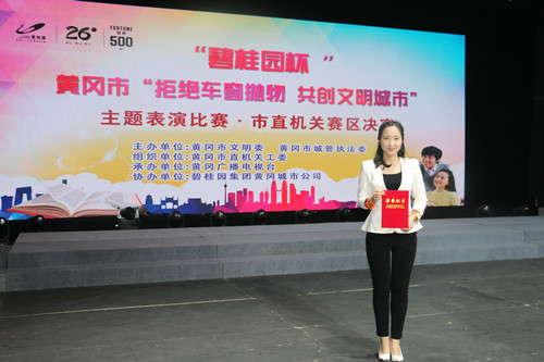 隨著《“八不”催開文明之花》合唱歌曲的奏起,11月14日,由黃岡市文明委、黃岡市城管執(zhí)法委主辦,黃岡市直機關(guān)工委組織的“拒絕車窗拋物,共建文明城市"主題表演比賽·市直機關(guān)賽區(qū)決賽在黃梅戲大劇院正式拉開帷幕,我公司參賽選手呂珊珊同志表現(xiàn)優(yōu)異,榮獲二等獎。